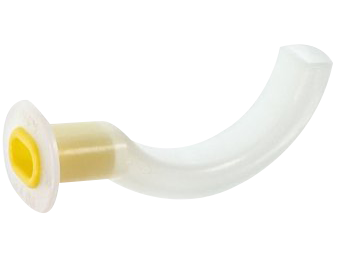 Cánula de Guedel (orofaríngea) AMARILLA No. 4 (90 mm). La cánula de Guedel (orofaríngea) es un dispositivo de material fabricado en PVC, que, introducido en la boca del paciente, evita el desplazamiento de la lengua hacia la vía aérea y la consiguiente obstrucción de la misma. La cánula de plástico es rígida, curva, con una pestaña reforzada en el extremo oral, de forma plana para asegurar que encaje perfectamente entre la lengua y el paladar duro.