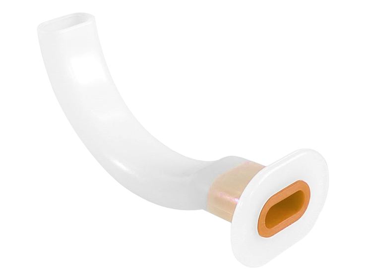 Cánula de Guedel (orofaríngea) NARANJA No. 6 (110 mm). Cánula de plástico curvo PVC flexible con una pestaña reforzada en el extremo oral de forma plana para asegurar que encaje perfectamente entre la lengua y el paladar duro.