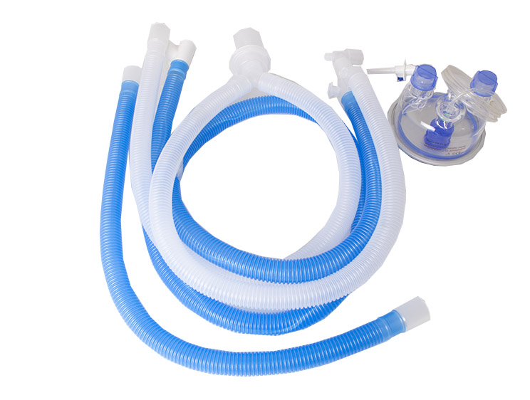 Circuito para ventilador ADULTO, CON CABLE CALEFACTOR EN LA VÍA INSPIRATORIA, TRAMPA DE AGUA en la línea ESPIRATORIA, tubería adicional de 60, línea de presión y cámara de humidificación. Compatible con F&P.