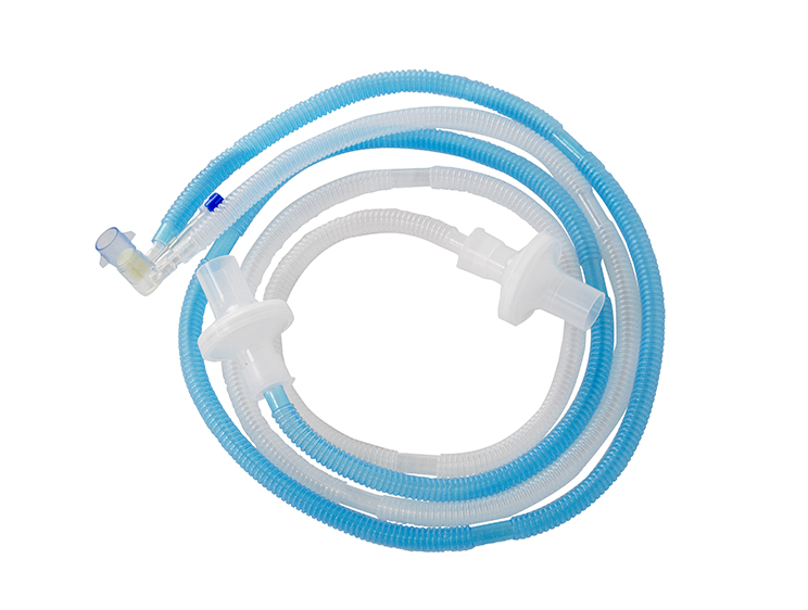 Circuito para ventilador universal NEONATAL COVID-19 SIMPLE con 2 filtros antibacterianos virales, nariz artificial y extensión para monitoreo de CO2. Diseñado para facilitar el tratamiento de pacientes infectados, protegiendo al enfermo, al ventilador y al profesional de la salud evitando infecciones cruzadas.
