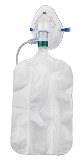 Mascarilla para oxigeno PEDIÁTRICA con bolsa reservorio, de alta concentración válvula y tubería de 2.1m / 7′. Tiene capacidad de aproximadamente 700 ml. Permite una administración de 6 a 10 Litros y la FiO2 oscilará entre el 60 y el 99%. Fabricada en plástico grado médico.