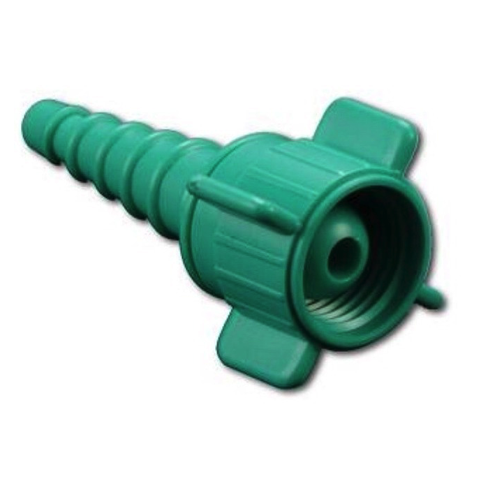 Niple tuerca de plástico (Cola de ratón). Conector fabricado en material de PVC, ideal para facilitar la conexión entre la toma de pared o tanque de oxígeno con las puntillas nasales, mascarillas, o cualquier otro dispositivo prescrito por el médico.