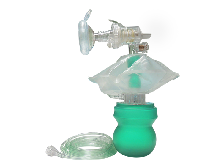 Resucitador DESECHABLE NEONATAL-INFANTIL CON VÁLVULA PEEP BAG EASY®. Diseñado con reservorio al frente que permite la visibilidad del flujo de oxígeno que se administrará al paciente, posee válvula PEEP ajustable, textura ligera, bolsa de compresión altamente flexible, válvula para cierre de entrada de aire fresco, reservorio de oxigeno, cuello flexible, 2 eslabones giradores. Mascarilla con conector giratorio de 360 grados, válvula pato, bolsa reservorio al centro con orificio para eliminar el exceso de aire, conexión de tubería de O2, balón texturizado tipo roll on de fácil agarre. Volumen de 130 ml para pacientes menores a 7 kg de peso.