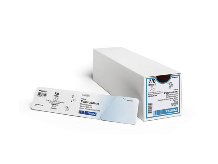 Sutura Polipropileno (sintética, monofilamento, no absorbible), Calibre: 2-0, Longitud: 90 cm, Aguja: 1/2 círculo, redonda (ahusada), 25 mm, doble armado.